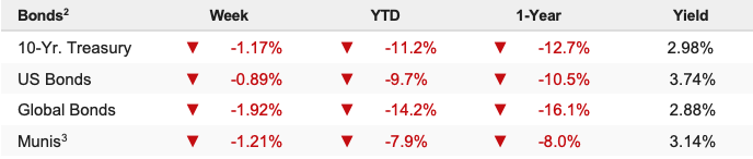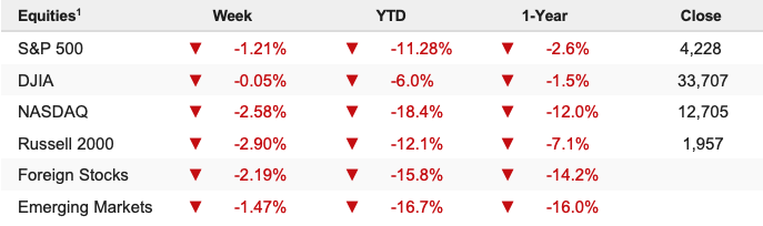 Equity markets wavered between gains and losses before ending the week with a loss as investors continued to assess the future path of Fed policy amid mixed economic data. At the same time, a sizeable options expiration weighed on stocks into the weekend. The S&P 500 fell 1.21% on the week and is down 11.28% YTD.
